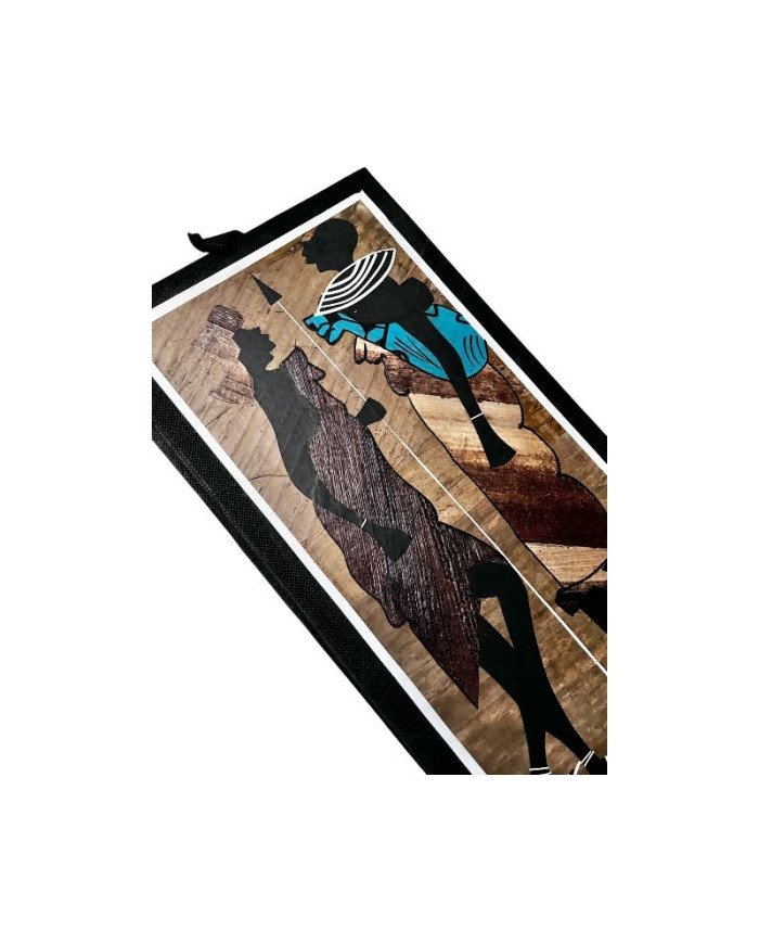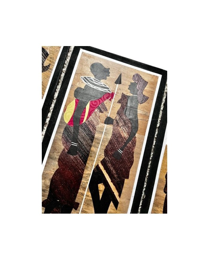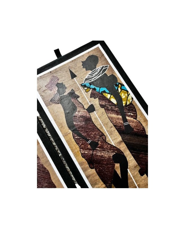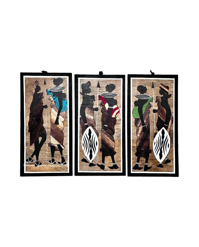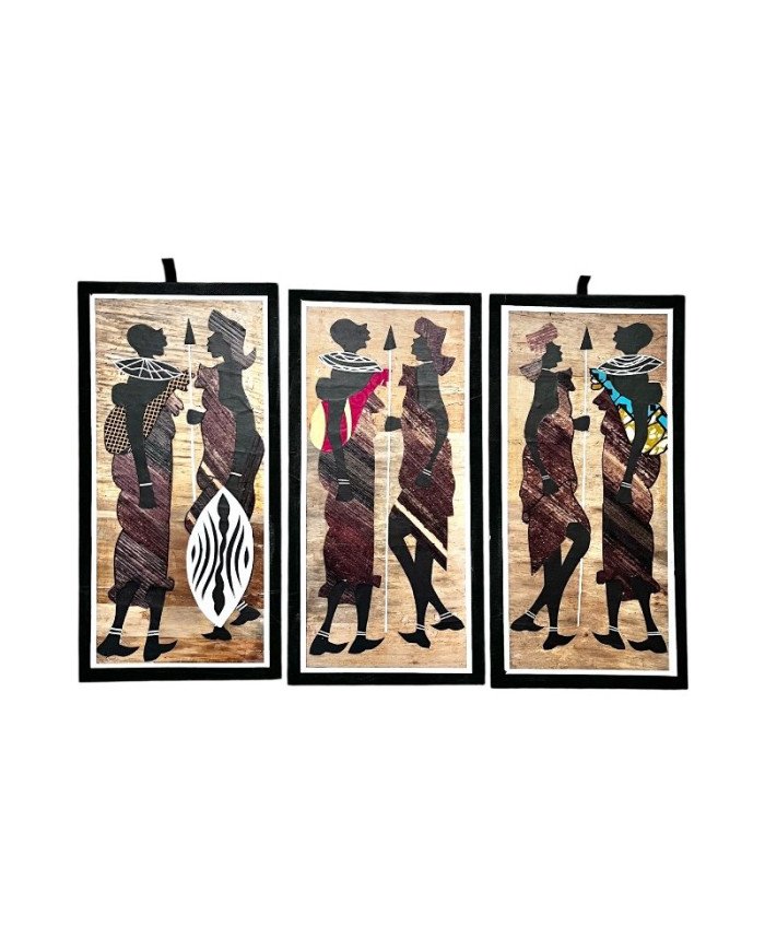 Handcrafted by skilled Kenyan artisans, this artwork blends natural materials with fabric embellishment to create a vivid, expressive tribute to Maasai heritage and family.