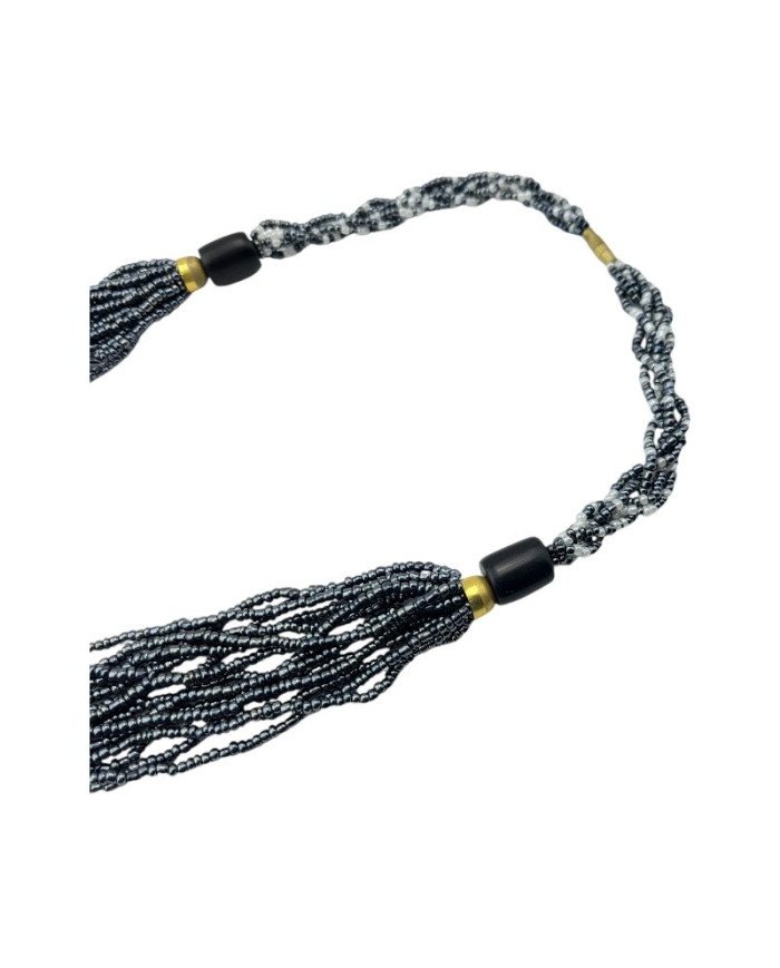 The Vutia Variety Necklace is a beautifully handcrafted piece of African jewelry that blends the richness of Maasai beadwork with the contemporary appeal of resin beads. This multi-strand African necklace creates a layered, textured look, with each strand offering a bold splash of color. The resin beads on either side add an extra touch of sophistication and balance to the design. Available in a variety of colors—including the stunning iridescent blue, classic black, and crisp white—the Vutia Variety Necklace can complement any style, from casual to dressy. Its versatility and vibrant energy make it a must-have accessory for any jewelry lover.