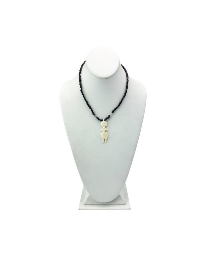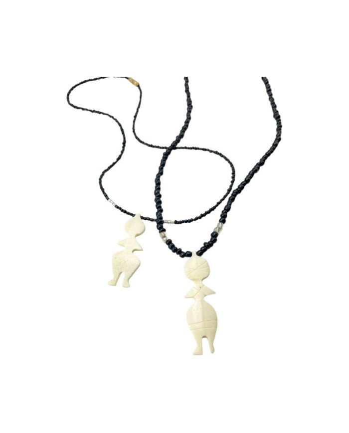 The Mtu Bone Necklace is a captivating piece of African jewelry that merges cultural artistry with timeless elegance. This handcrafted necklace showcases vibrant Maasai beads, leading to a stunning cow bone pendant in its natural color. Expertly carved into the shape of a person and etched with simple designs, the pendant adds depth and meaning to this striking accessory. Perfect for those who appreciate authentic craftsmanship, this necklace is a beautiful expression of African tradition and style.