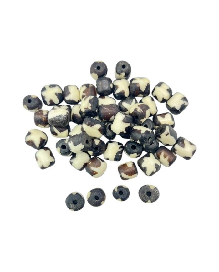 Experience the artistry of Kenya with these exquisite handmade African Nyota Cow Bone Beads. Handcrafted with care by Kenyan artisans, they feature intricate starlike designs achieved using traditional wax-resist dye techniques, preserving the rich cultural heritage of African craftsmanship. A perfect blend of tradition and elegance, these beads are ideal for adding a distinctive touch to any piece of African jewelry.