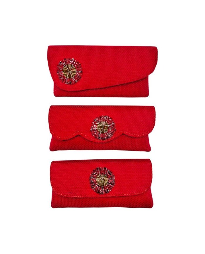 The Red and Brass Serenade is a stunning accessory bundle that seamlessly blends vibrant red with elegant brass accents. This set includes a handcrafted Large Red Jute Clutch Purse, the Malkia Brass Earrings, and the Machweo Moja Brass Necklace. The clutch offers a bold pop of color, while the brass earrings and necklace add a regal touch. Ideal for special occasions or as a standout everyday set, this collection celebrates the beauty of sustainable fashion and unique East African craftsmanship.