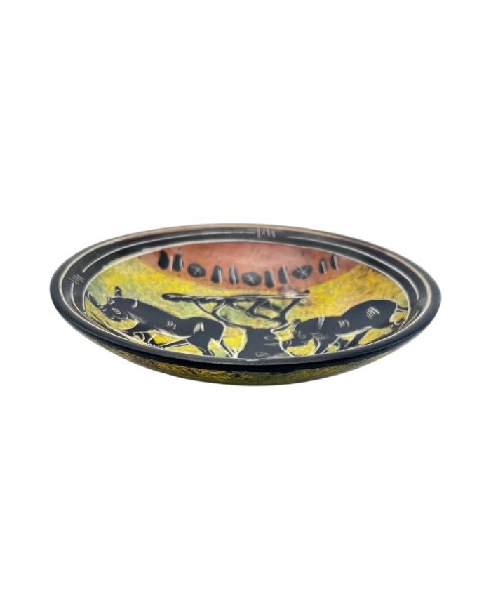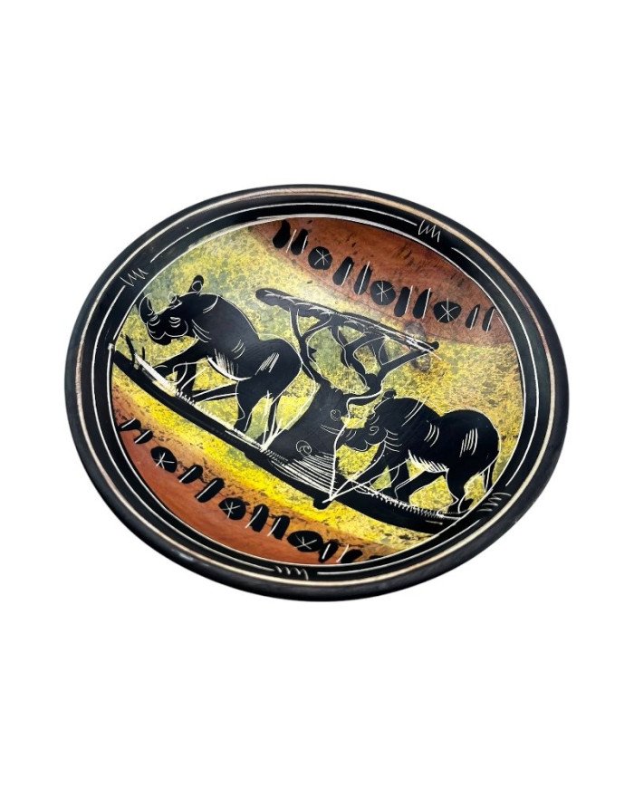 Bring the raw beauty of the African wilderness into your home with this hand-carved decorative dish, crafted in Kenya from natural Kisii soapstone. This unique piece features two powerful rhinos standing beneath an African tree, symbolizing resilience, strength, and the untamed spirit of the savannah.