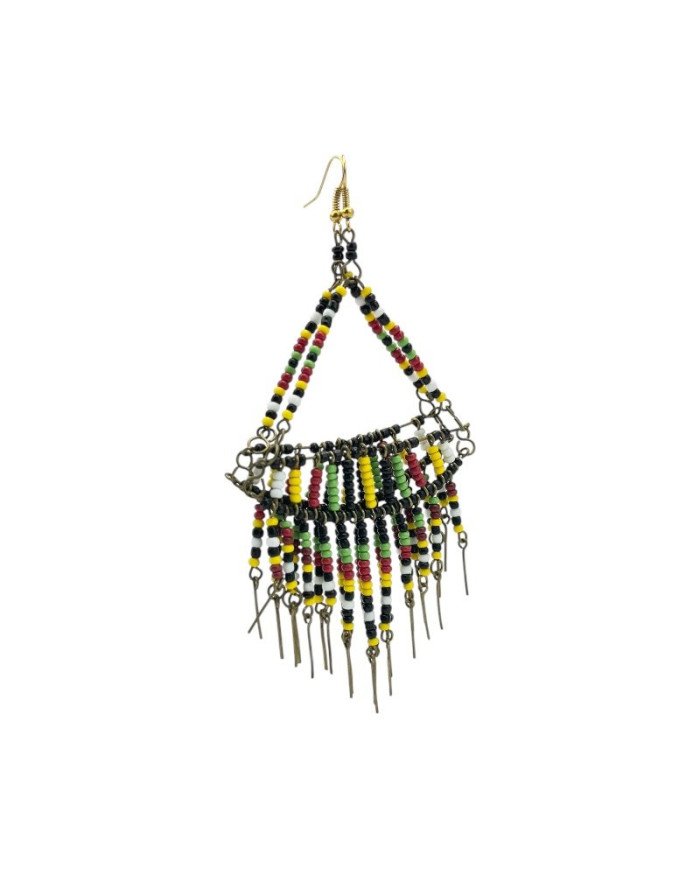 The Upepo Large Bead Earrings are a bold statement piece that beautifully showcases the artistry of Maasai craftsmanship. With their large triangular design, these earrings command attention while remaining lightweight and comfortable to wear. The earrings feature bold Maasai glass beads that add a splash of color, complemented by strands of dangles that incorporate sleek straight metal pieces for added texture and movement. Perfect for both casual outings and special occasions, the Upepo Bead Earrings elevate any outfit and celebrate the rich cultural heritage of African jewelry design.