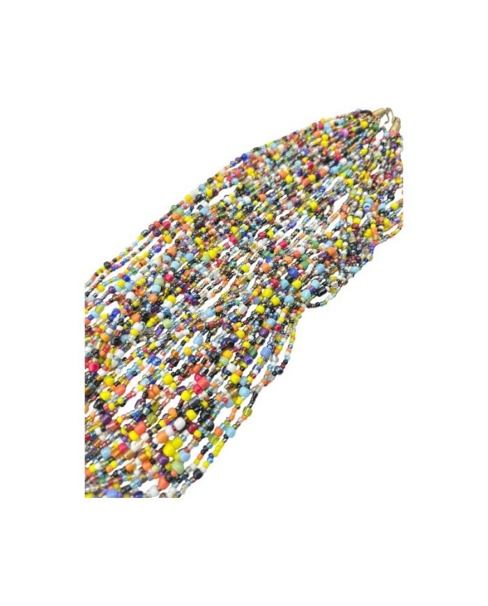 The Tamasha Moja Necklace is a stunning piece of handmade African jewelry, crafted with care by artisans in Kenya. This stunning African necklace showcases a beautiful array of colorful Maasai glass beads, expertly arranged across several strands to create a bold and eye-catching design. Each bead is hand-selected and strung to perfection, making every necklace a unique work of art. Whether worn for a special occasion or to elevate your everyday look, the Tamasha Moja Necklace brings a touch of African culture and style to any outfit.