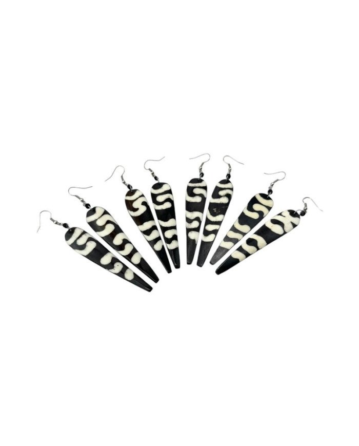 Embrace the rich heritage of Kenya with Mkuki Batik Bone Earrings, a striking piece of handmade jewelry. Crafted from natural bone and featuring traditional batik techniques, these earrings offer a unique blend of cultural artistry and contemporary style. The intricate designs dyed onto the bone capture the essence of Kenyan craftsmanship, making each pair a distinctive accessory. Stunning and versatile, Mkuki Batik Bone Earrings effortlessly complement both casual and formal outfits. Celebrate the beauty of traditional Kenyan art with these elegant and unique earrings that reflect the skill and creativity of local artisans.