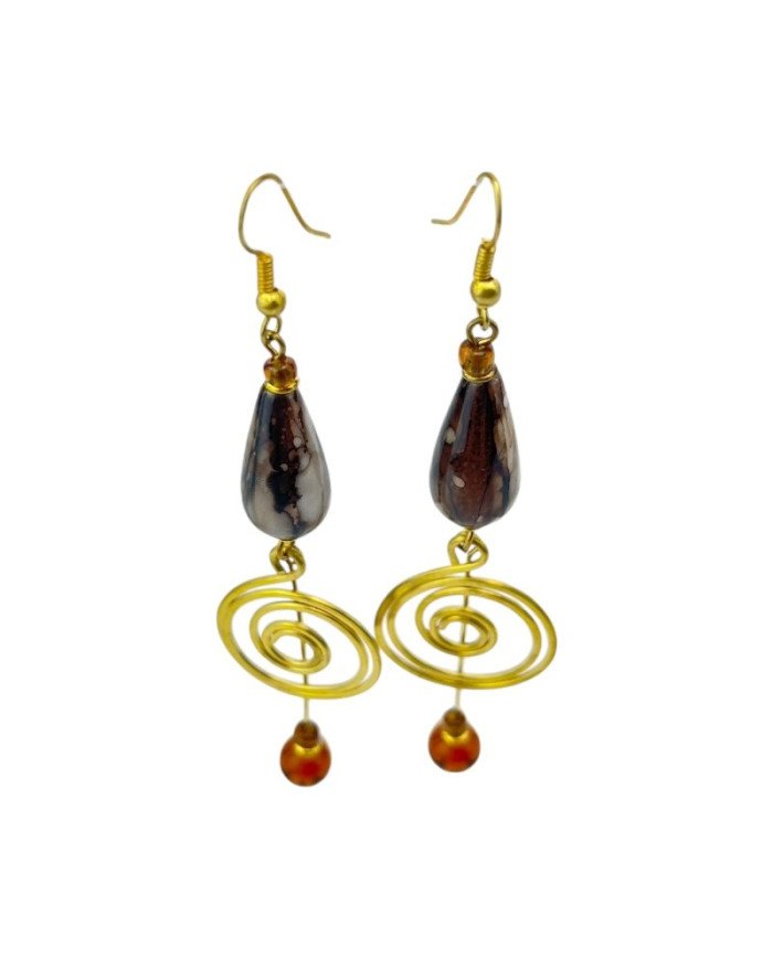Display elegance with Wakati Brass Earrings, stunning African jewelry handcrafted in Kenya. Featuring a marbled teardrop bead paired with brass swirl and rod dangles, these unique African earrings blend traditional craftsmanship with contemporary design for a striking statement piece.