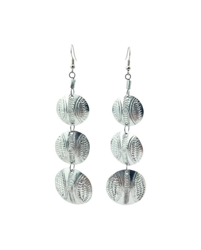 Introducing the Kipepeo Tiered Disk Earrings, a stunning example of sustainable artistry in African jewelry. Handcrafted from recycled aluminium, these earrings feature a distinctive tiered disk design adorned with an elegant stamped pattern. The lightweight construction ensures comfort, making them perfect for everyday wear or special occasions. Embrace eco-friendly fashion with these unique earrings that celebrate both style and environmental consciousness. The Kipepeo Tiered Disk Earrings are a versatile addition to your jewelry collection, reflecting the creativity and craftsmanship of Kenyan artisans.