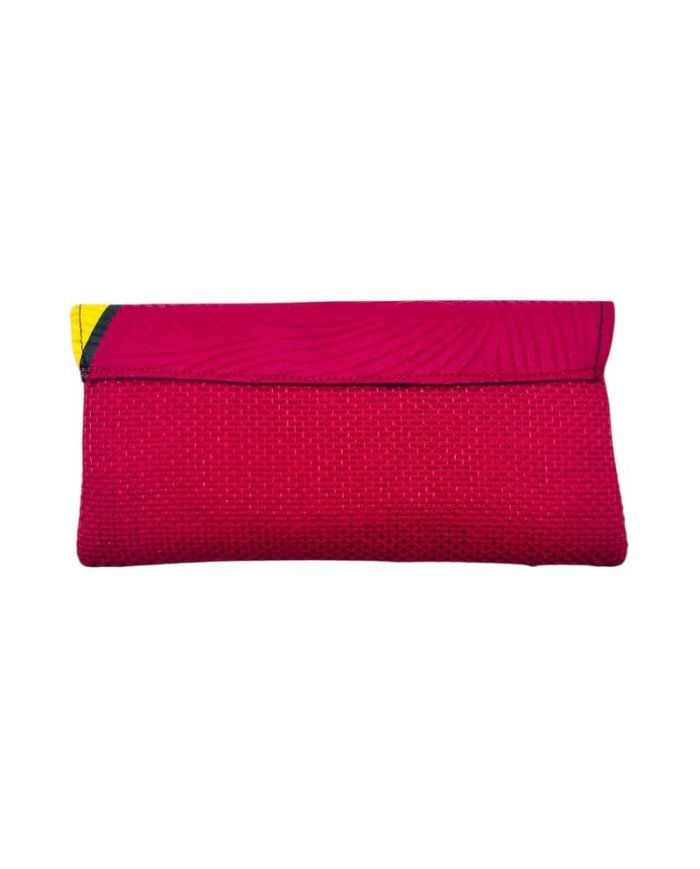 The Kitenge Jute Clutch Purse – Large Red is a bold fusion of texture, tradition, and color. Crafted with a vibrant red jute base and topped with a flap of assorted kitenge fabric patterns, this handmade clutch is both eye-catching and full of cultural character. Inside, it’s lined with smooth black fabric and includes a small zippered pocket for essentials. The main compartment zips closed, while the flap fastens securely with a hidden magnetic closure. Stylish and practical, this clutch adds a vibrant African touch to any outfit—day or night.