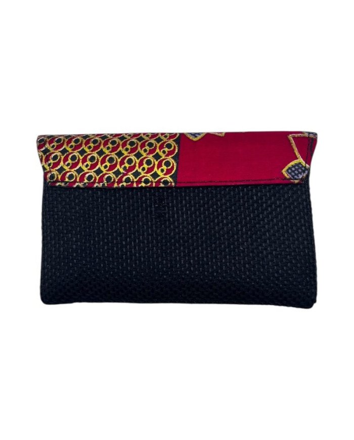 Elevate your style with this small handmade Kitenge Jute Clutch Purse in Black. Featuring a durable black jute fabric main compartment, this African accessory is lined with smooth black fabric and includes a small zippered pocket for your essentials. The flap showcases vibrant colorful kitenge prints and closes securely with a magnetic snap. Perfect for adding a bold, cultural touch to any outfit.