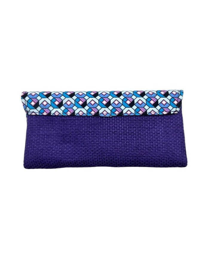The Kitenge Jute Clutch Purse – Large Purple is a vibrant statement piece that merges cultural elegance with handmade quality. Crafted with a deep purple jute base and a flap made from assorted kitenge fabric patterns, this African accessory is both bold and sophisticated. Inside, it’s lined with black fabric and includes a small zippered pocket for your essentials. The main compartment zips shut for added security, while the flap closes with a magnetic snap. Whether you're dressing up or adding flair to a casual outfit, this clutch delivers color, tradition, and style in one beautiful package.
