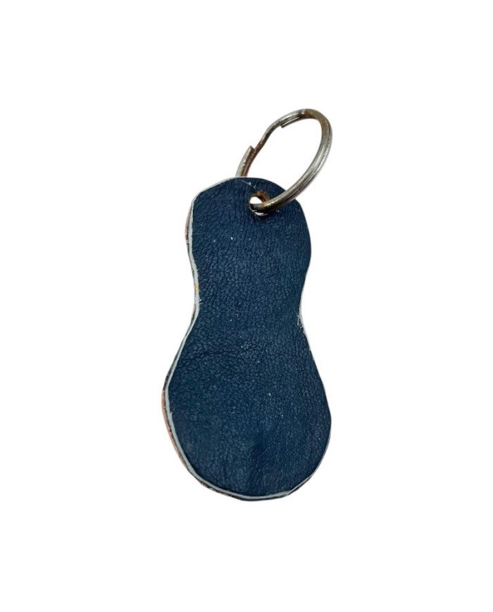 Carry a piece of African symbolism with this striking Leather Animal Tracks Sandal Keychain, handcrafted by Kenyan artisans. This flip-flop shaped leather keychain features a bold design of wavy red, yellow, and blue stripes, overlaid with a stylized cloven animal tracks pattern, evoking the wildlife paths of the savanna. The straps are beaded in traditional Maasai colors—red, white, black, and blue—for a vibrant and cultural finish. Perfect as a unique gift, keepsake, or statement accessory rooted in African tradition.
