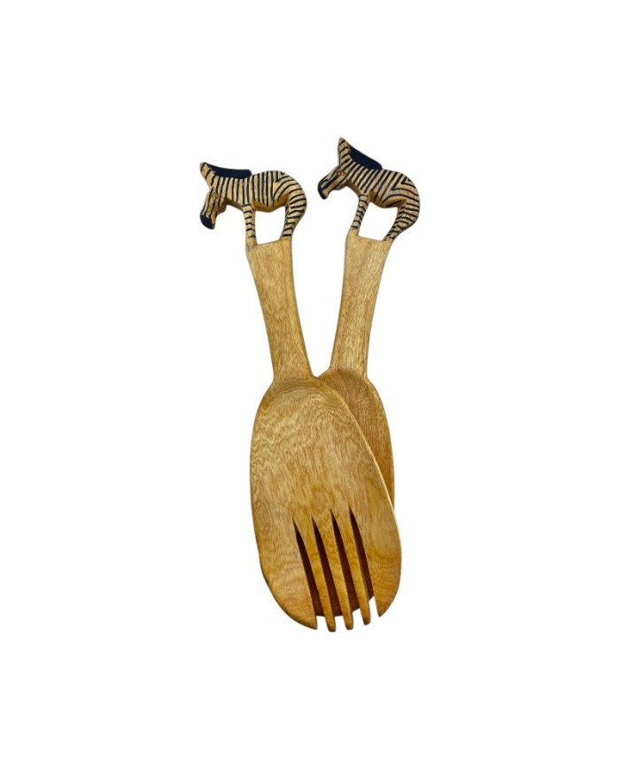 Bring a piece of African craftsmanship into your home with the Pundamilia Carved Wood Spoons, a handmade salad server set from Kenya. Featuring intricate zebra carvings on the handles, each spoon is a beautiful example of the skill and artistry of the Akamba tribe, known for their masterful wood carving techniques. Crafted from high-quality wood, the natural grain and texture ensure that every set is unique. The Pundamilia spoon can be used as both a functional kitchen utensil and a striking decor piece, perfect for those who appreciate handmade, culturally rich items. Due to the handmade nature, each set may vary slightly, showcasing the authentic beauty of the wood and craftsmanship.