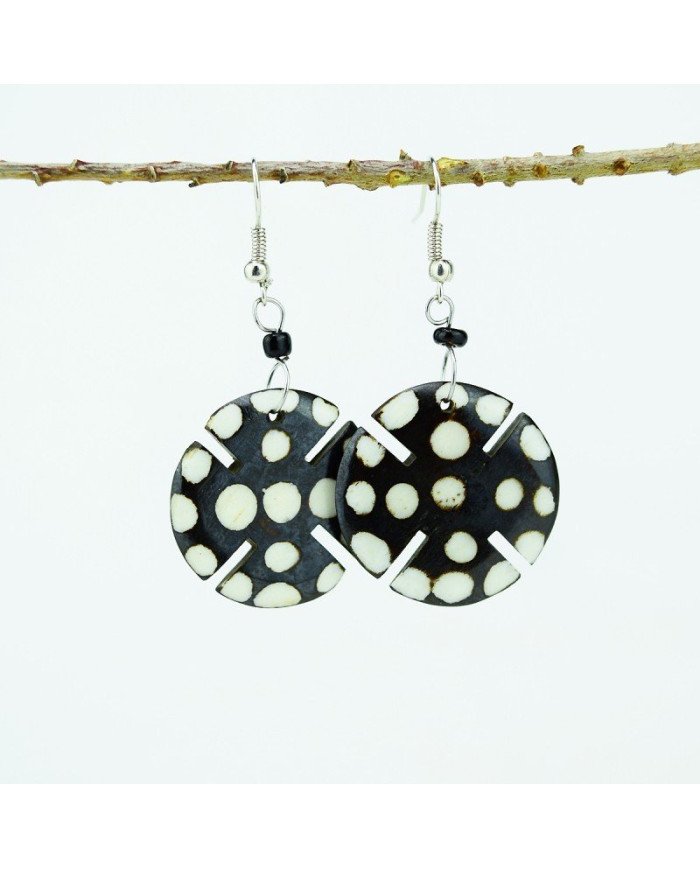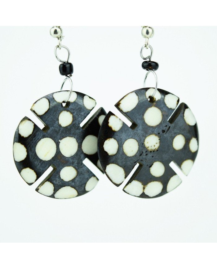 • Dimensions: Cow bone disc approximately 1" in diameter; total earring length approximately 2"