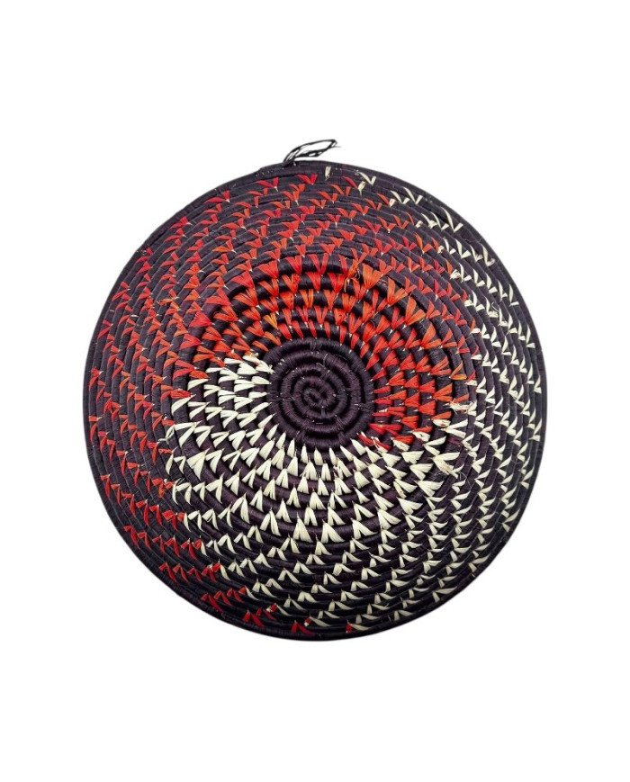 Each coil is woven by hand using time-honored techniques, creating a dynamic pattern full of movement and depth. The bold color palette makes this basket a standout statement piece, whether hung on the wall, styled as a centerpiece, or incorporated into a curated basket collection. Its blend of earthy and vibrant tones brings warmth, culture, and artisan craftsmanship into any space.