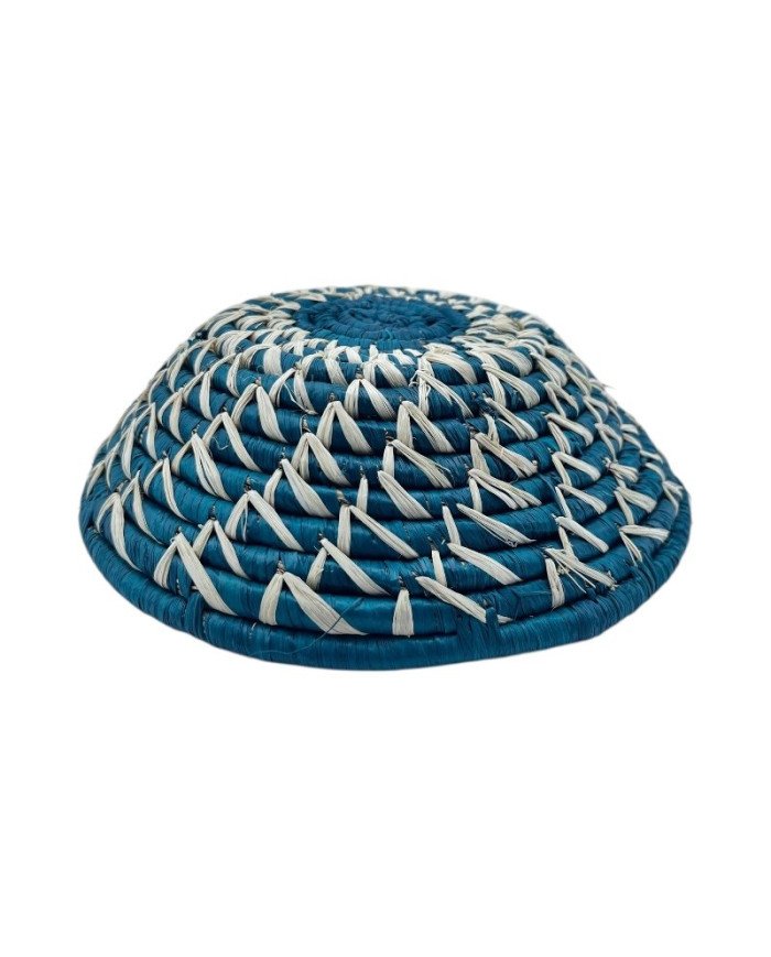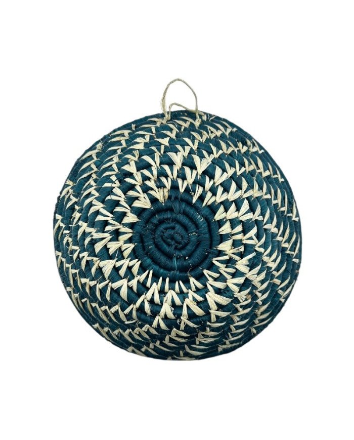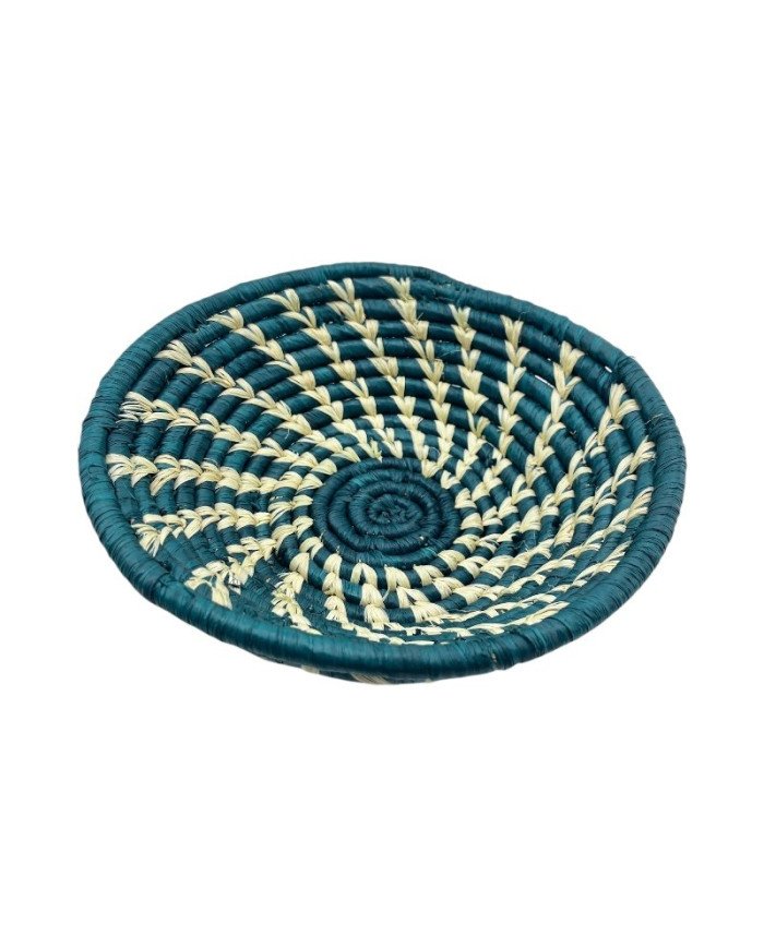 The Seafoam Drift Mini Basket brings a refreshing, coastal-inspired touch to any space. Handwoven by Ugandan artisans using traditional raffia coiling techniques, this compact basket features soothing blue-green coils reminiscent of seafoam and shoreline waters. A natural raffia spiral opens outward, adding contrast and highlighting the texture and craftsmanship.