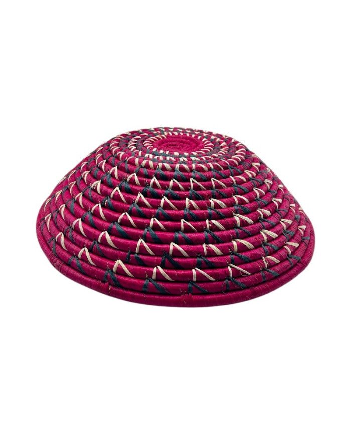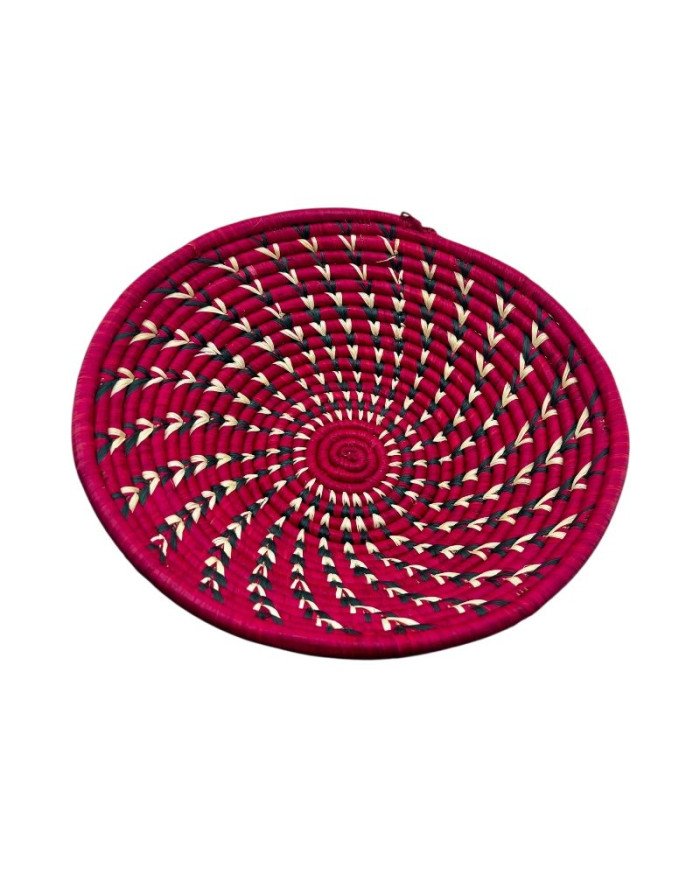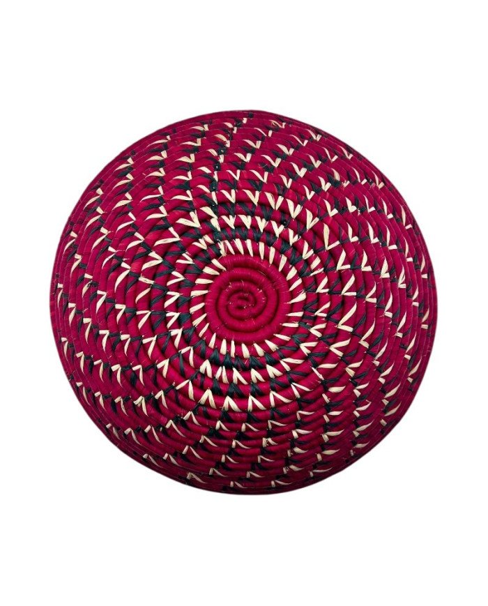 The Ruby Vine Basket blends bold color with organic movement, creating a piece that feels both lively and grounded. Handwoven by skilled Ugandan artisans, this basket features a vibrant red coil base that radiates warmth. Spiraling outward are alternating natural and deep green stitched accents, forming a rhythmic, vine-like pattern that winds across the surface with beautiful flow and texture.