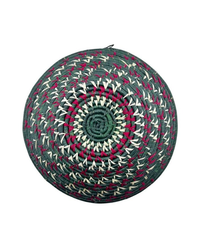 The Forest Flame Basket brings together the earthy calm of the forest and the vibrant energy of firelight. Handwoven by Ugandan artisans using traditional raffia coiling, this basket features a rich forest-green base that adds depth and grounding to any room. Spiraling across the surface are alternating natural and red stitched accents that create a lively, flickering pattern—like warm sparks moving through shadowed wood.