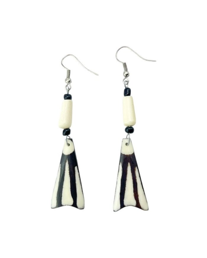• Style: Two-part design with tube bead and striped batik bone dangle