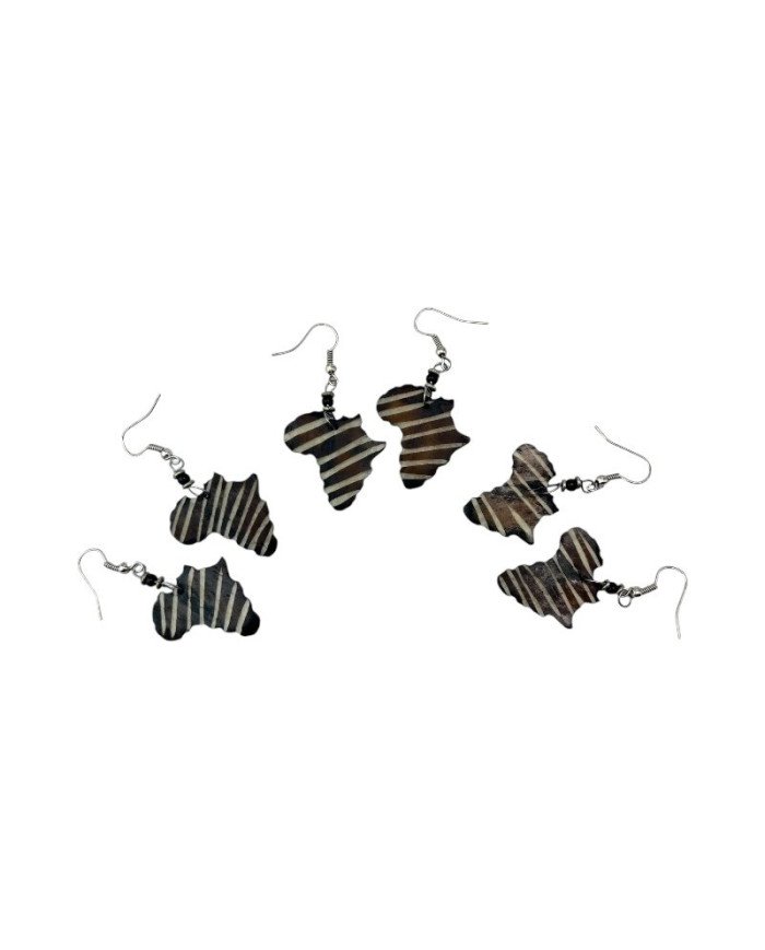 Celebrate African heritage with our Mistari Africa Bone Earrings, a stunning piece of handmade African jewelry. Crafted from natural bone, these earrings are uniquely shaped like the African continent, capturing the essence of the land. The rich brown color contrasted with bold white stripes creates a visually striking effect, making them a standout accessory. Each pair is meticulously handcrafted, reflecting traditional artistry and modern style. Perfect for adding a touch of cultural elegance to any outfit, these earrings are a meaningful and stylish choice for any occasion. Embrace the beauty and heritage of Africa with these distinctive earrings.