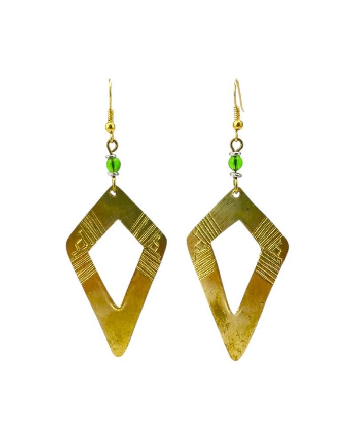 Discover the beauty of handmade African artistry with our Kite Cut-Out Brass Earrings. Each pair is meticulously handcrafted in Kenya, showcasing a stunning kite-shaped triangle dangle with a distinctive center cut-out. These African earrings are not just accessories; they embody a blend of traditional craftsmanship and modern style. Choose from four vibrant bead colors to match your unique personality and elevate your everyday look. Lightweight and comfortable, these earrings are perfect for any occasion—whether you're dressing up for a special event or adding flair to your casual outfit. Celebrate your individuality with this beautiful piece of handcrafted African jewelry that tells a story of creativity and culture.
