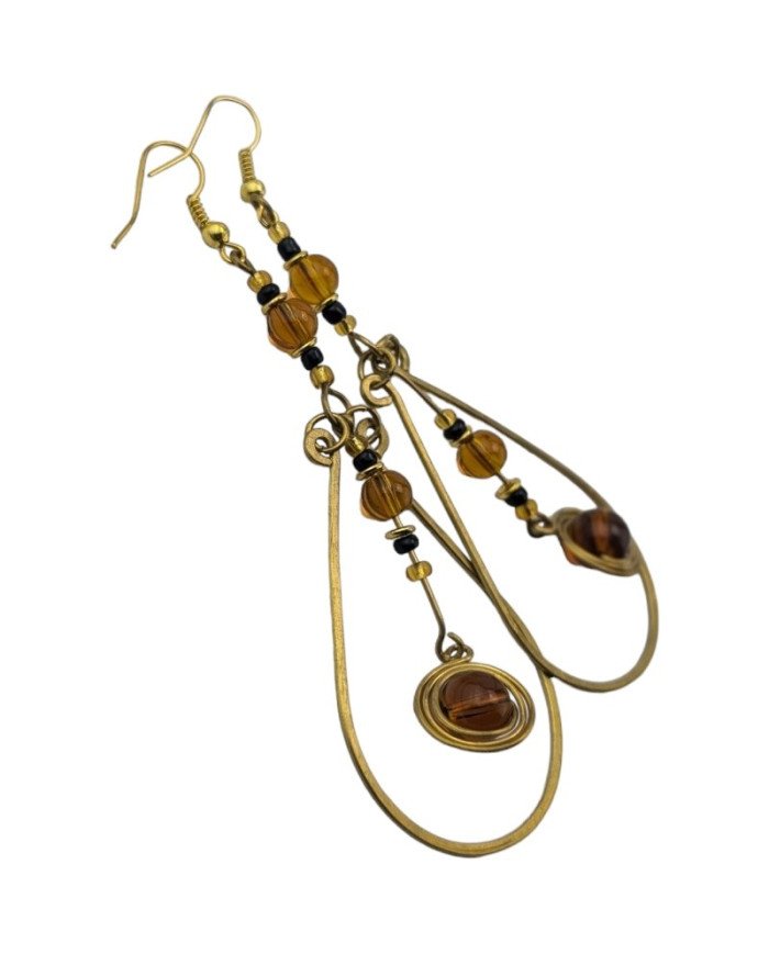 Elevate your accessory collection with the Ujasiri Brass Teardrop Wire Earrings, a stunning example of African jewelry artistry. Handcrafted with meticulous care, these earrings feature a refined brass teardrop shape suspended from delicate wire. The design is enriched with colorful glass beads, adding a vibrant touch and reflecting the rich cultural heritage of African craftsmanship. These earrings are versatile, perfect for any occasion, whether you're enhancing your everyday look or making a statement at a special event. Embrace the fusion of traditional African elements and contemporary design with these unique, handmade earrings.