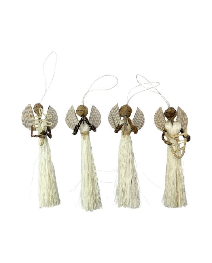 Welcome the Takatifu Christmas Ornament, a stunning small angel decoration that showcases traditional Kenyan craftsmanship using natural materials like sisal and banana fiber. Each holiday ornament is meticulously handmade, reflecting the rich cultural heritage of African artistry.