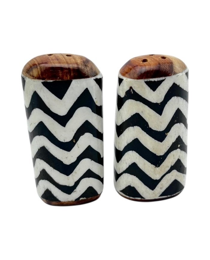Bring a touch of African-inspired artistry to your table with our Batik Wave Shakers. Each shaker is carefully handcrafted from durable bone and showcases a flowing wave pattern inspired by traditional batik designs. The intricate design adds both texture and visual interest, making these shakers a stylish and functional addition to any dining setting. Perfect for everyday use or gifting, they combine practicality with bold cultural charm.