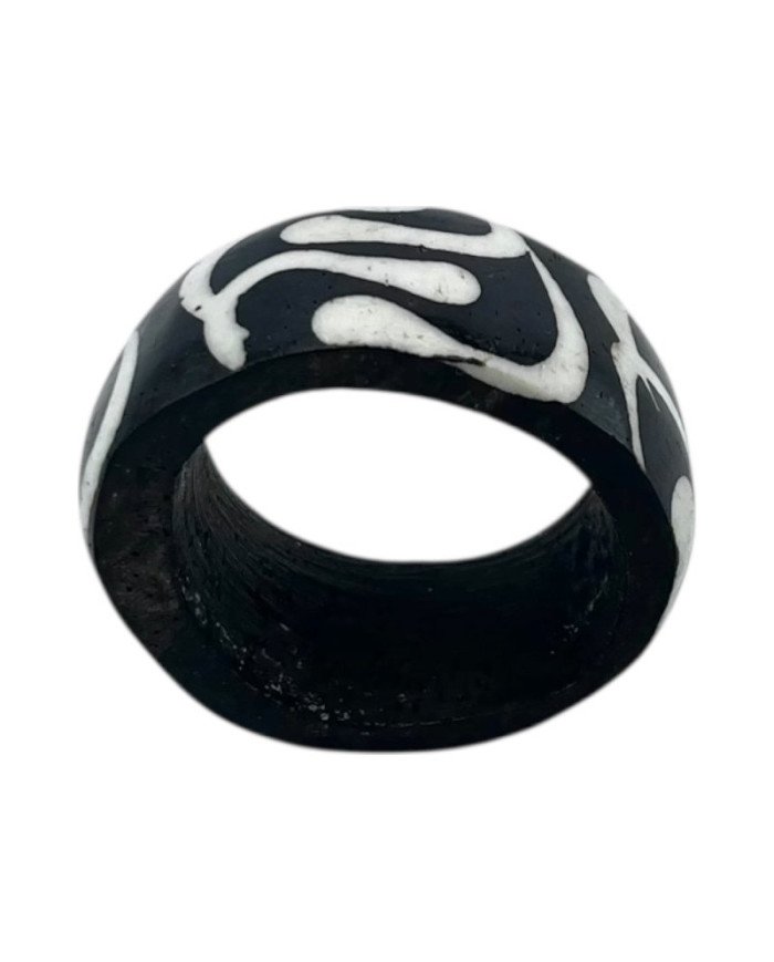 Bring a sense of movement and artisanal beauty to your table with our Mto Batik Napkin Rings. Each ring is carved from ethically sourced cow bone and hand-dyed using traditional batik techniques to create flowing, river-inspired white swirls against a rich black backdrop.