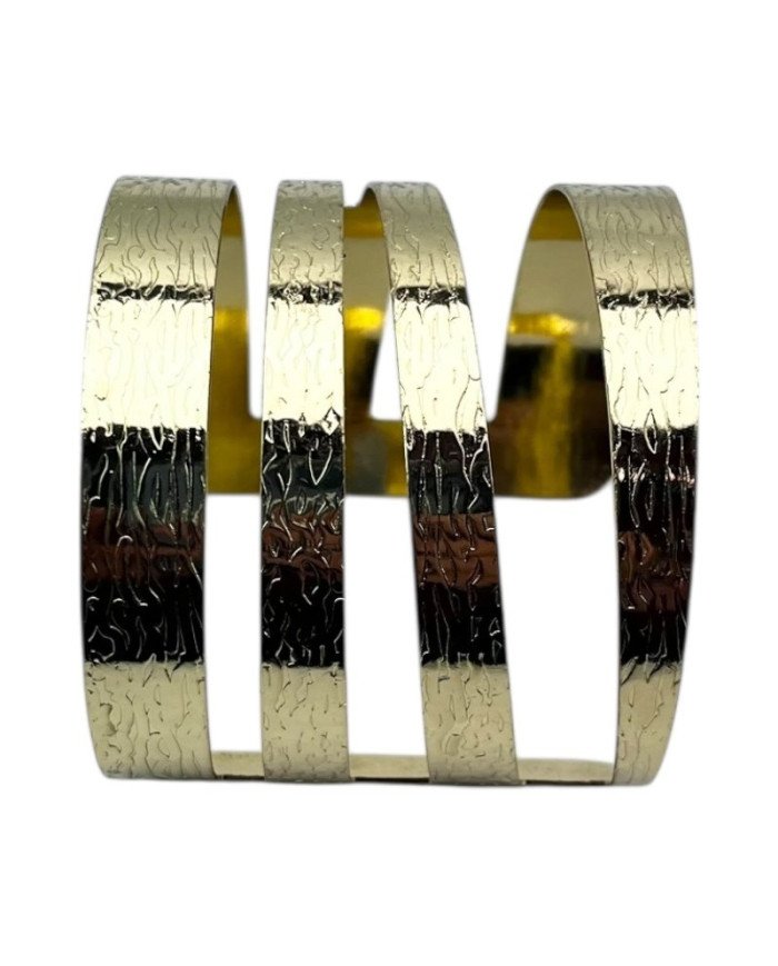 Make a bold statement with the Dhahania Cuff, a handcrafted brass bracelet that celebrates creativity and movement. Kenyan artisans shape and texture four distinct bands, alternating in thickness and irregular spacing to create a flowing, abstract pattern that is entirely unique.
